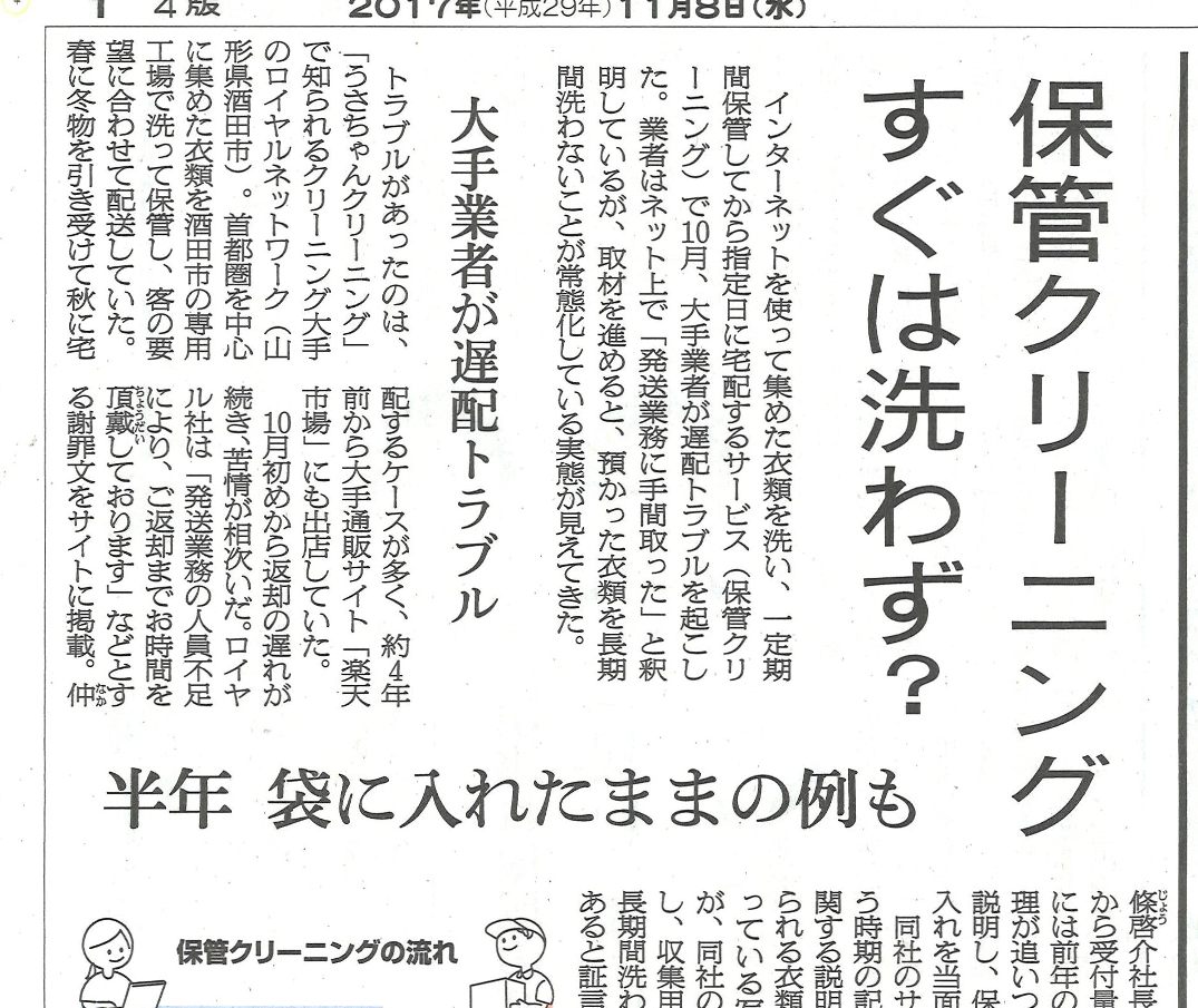 (保管クリーニングの実態を朝日新聞が大々的に報道したが、それを無視するように各業者は未だに保管クリーニング事業を行っている)